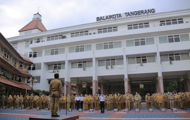 BINGKAIKOTA.COM,- Mengawali hari jelang tutup bulan Mei p2022, Wakil Wali Kota Tangerang H. Sachrudin memimpin apel pagi yang dihadiri oleh seluruh Pejabat Tinggi Pratama, Koordinator, dan Sub Koordinator di lingkup Pemerintah Kota Tangerang, Senin (30/5/22).