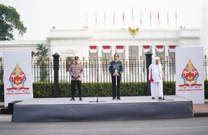 Kirab merah putih ini dilepas oleh Presiden Indonesia Joko Widodo (Jokowi) dari depan istana merdeka bersama Ulama karismatik Habib Luthfi bin Ali bin Yahya dan Kapolri Jenderal Listyo Sigit.(prh)