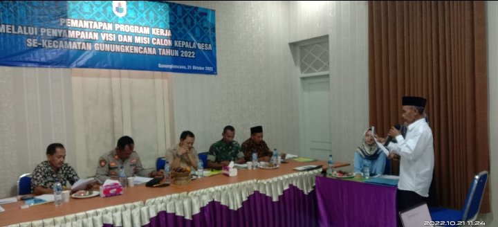 apa lagi pada saat penetapan oleh para colon kepala desa agar semua calon bisa menjalankan sesuai visi dan visi pada saat penyampaian diaula kecamatan Gunung Kencana .(darjo)