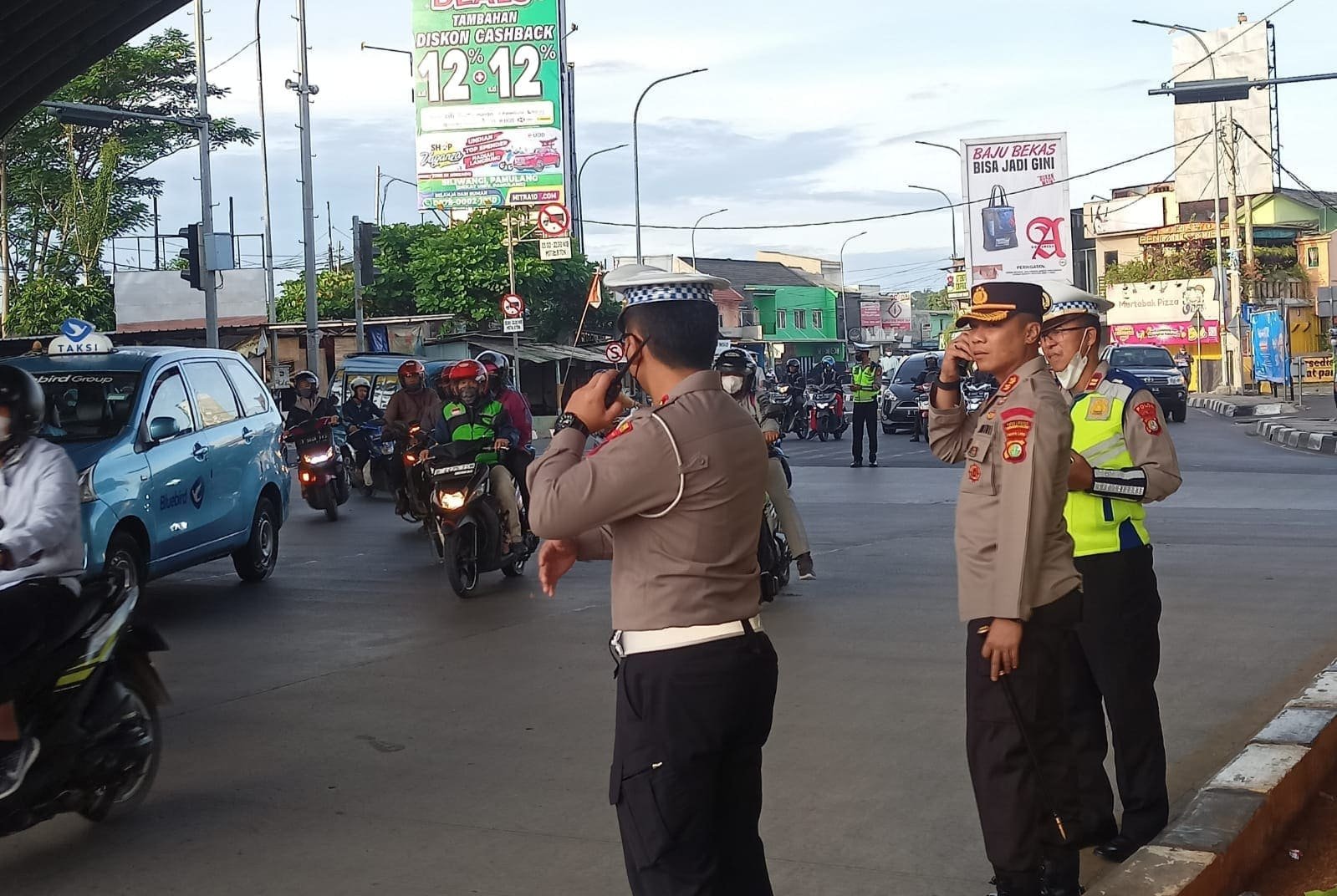 TANGERANG,BINGKAIKOTA.COM-Kapolres Tangsel AKBP Sarly Sollu, S.IK., M.H, turun langusng melaksanakan kegiatan pengaturan (gatur) lalu lintas (Lalin) padat pagi di Perempatan Lampu Merah Gaplek Pamulang Kota Tangerang. Senin (12/12/2022).