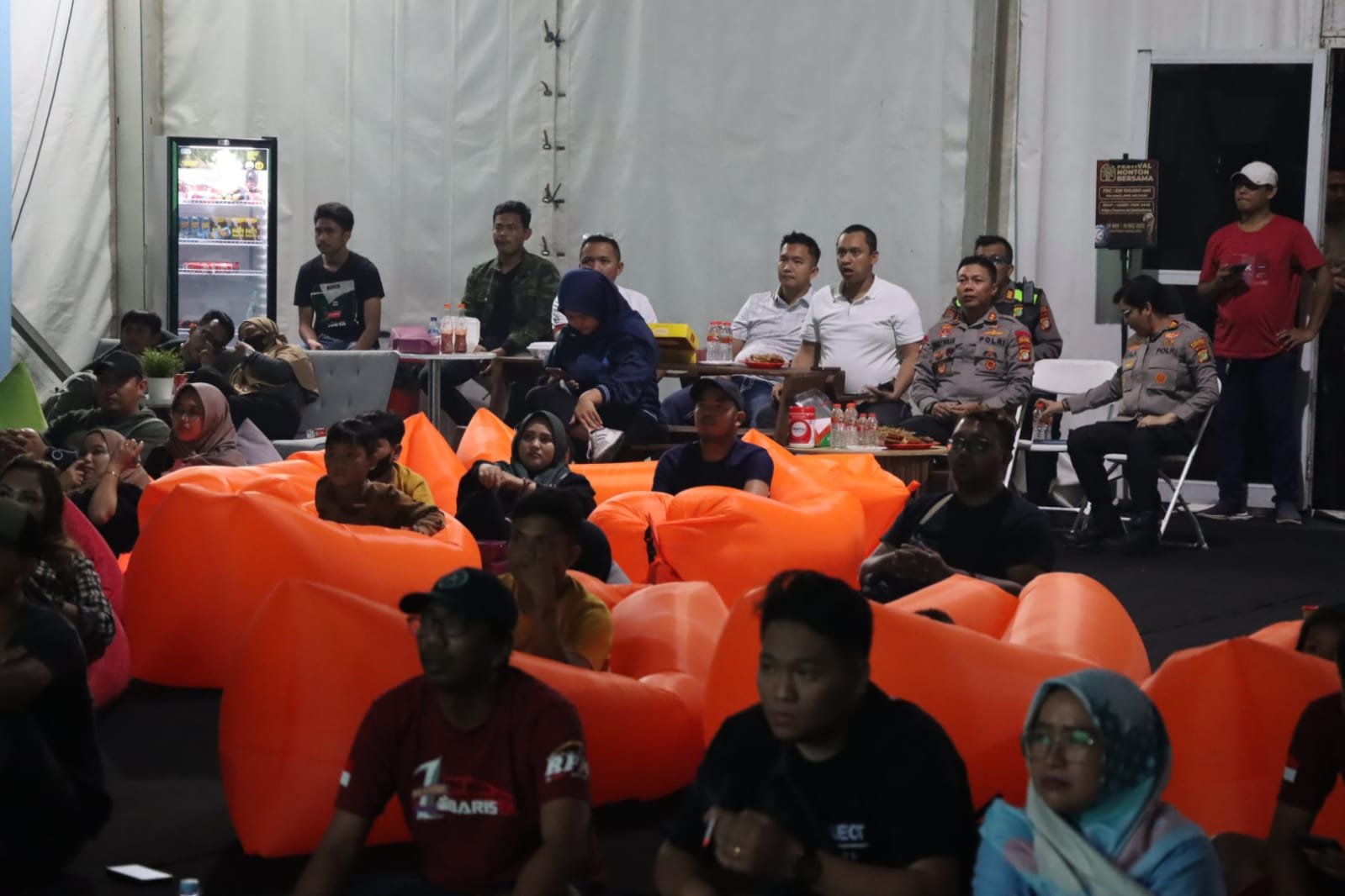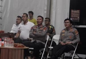 TANGERANG, BINGKAIKOTA.COM-Kapolres Tangsel AKBP Sarly Sollu, S.I.K., M.H didampingi Kapolsek Pagedangan AKP Seala Syah Alam, S.I.K bersama jajaran PJU Polres Tangsel nonton bareng (Nobar) final piala dunia 2022 yang berlangsung di Edutown Area Pagedangan, minggu malam (18/12/22).