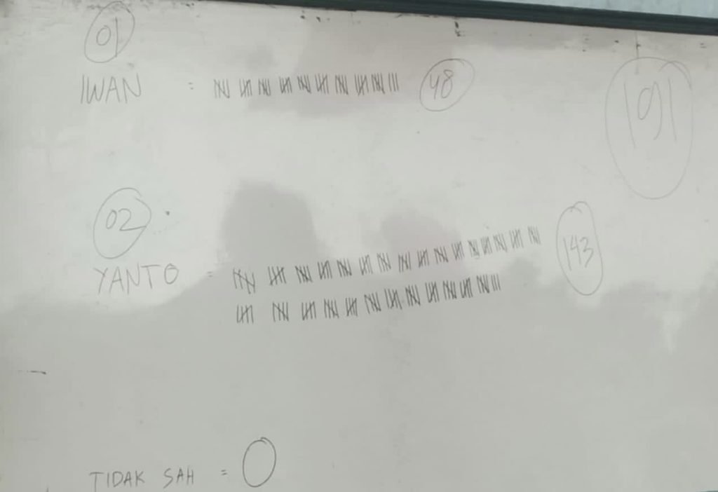 Hasilnya, Yanto terpilih sebagai calon ketua RT 02 RW 10 Kelurahan Cipondoh, Kecamatan Cipondoh periode 2023-2025. Yanto memperoleh 143 suara. Sedangkan Iwan meraup 48 suara.
