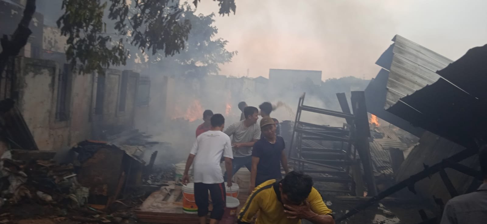 TANGERANG, BINGKAIKOTA.COM- Kebakaran hebat melanda rumah dan gudang material kayu di Kampung Poncol, Kelurahan Pedurenan, Kecamatan Karang Tengah, Kota Tangerang, Banten.