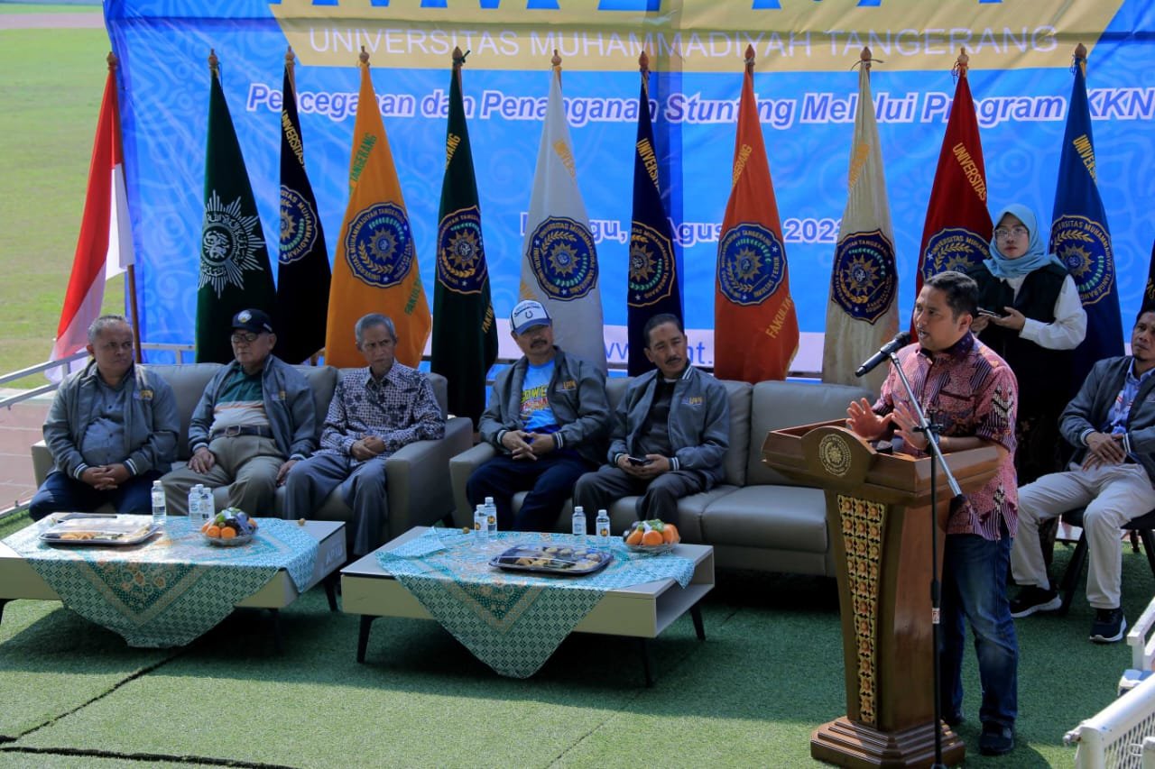 KOTA TANGERANG, BINGKAIKOTA.COM – Kegiatan Program Kuliah Kerja Nyata (KKN) mahasiswa Universitas Muhammadiyah Tangerang (UMT) tahun 2023 secara resmi dimulai. Wali Kota Tangerang, H. Arief R. Wismansyah turut melepas lebih dari 2000 mahasiswa bersama seluruh jajaran Rektor dan Civitas Akademika UMT di Stadion Benteng Reborn, Kota Tangerang, Minggu (6/8).