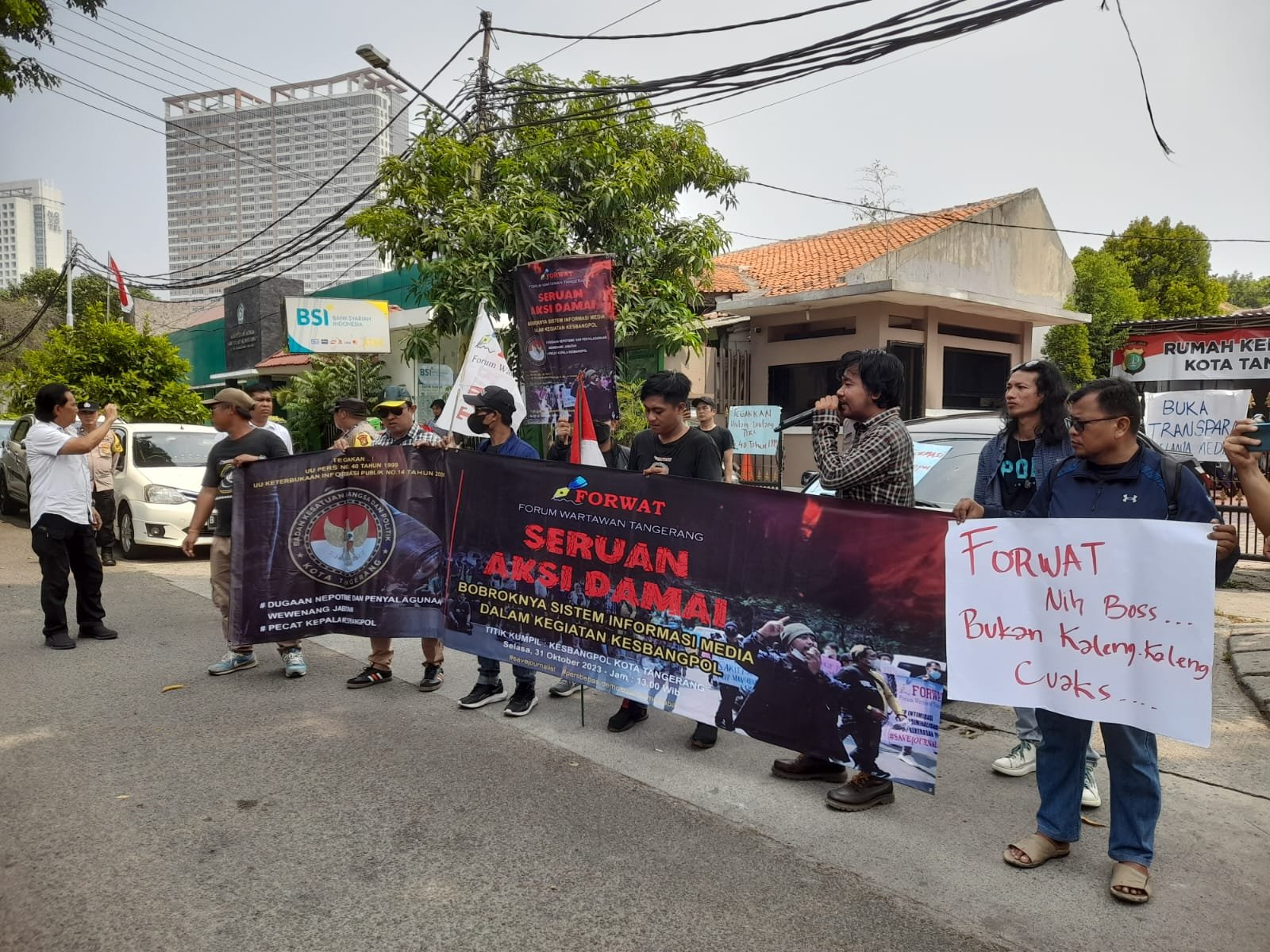 Hal itu disampaikan Ketua Forwat, Andi Lala saat menggelar aksi damai, di Kantor Kesbangpol Kota Tangerang, Selasa (31/10/2023).