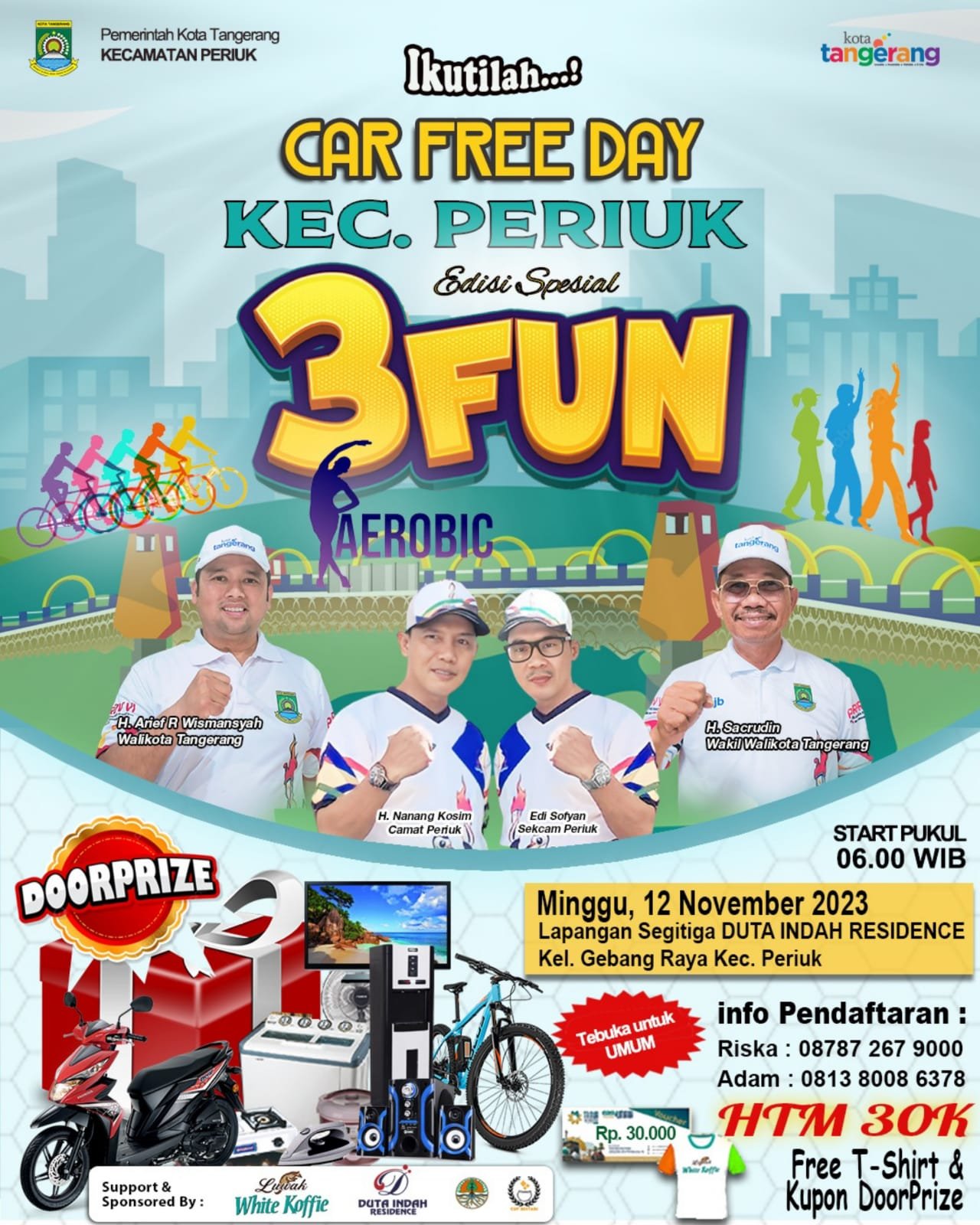 Selain dari Pihak Duta Indah Residence ada beberapa pihak juga yang mendukung kegiatan Car Free Day seperti Polsek Jatiuwung, Koramil Cibodas, Pokdar, Mitra Babinsa, Karang Taruna dan Para Tenant yang memberikan tambahan Doorprize untuk para peserta CFD 3Fun, Kata Ickna Saat di temui di lokasi Car Free Day, Ujarnya