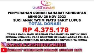 “Open donasi sudah kami lakukan dari tanggal 23 November s/d 24 November 2023, dari hasil donasi kami mendapatkan dana sebesar Rp.437.5178,- , saya ucapkan terimakasih kepada para donatur dan teman-teman saya yang tidak sempat saya sebutkan satu-persatu.”imbuh Gusti saat di hubungi via pesan singkat WhatsApp