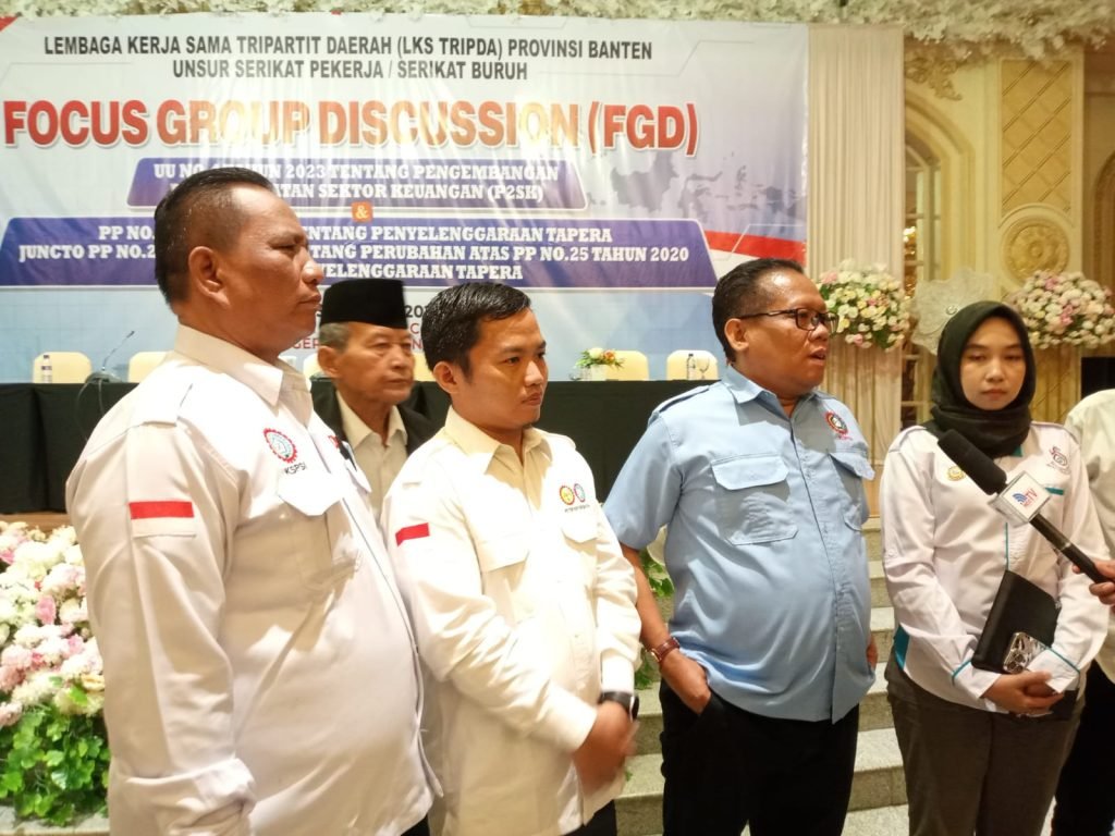 Wakil Ketua LKS TRIPDA Provinsi Banten Dedi Sudarajat, S.H.,M.H.,M.M.,C.T.A yang juga Ketua DPD KSPSI Provinsi Banten Mengatakan, Penolakan UU P2SK dan PP Tapera tersebut merupakan hasil dari Focus Group Dicussion (FGD) yang disepakati oleh perwakilan perangkat organisasi buruh se- Provinsi Banten yang akan menjadi rekomendasi untuk para stakeholder.