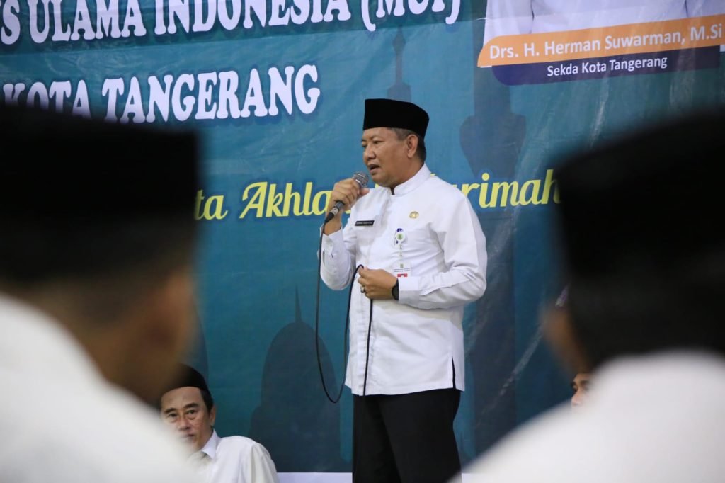KOTA TANGERANG, BINGKAIKOTA.COM – Sekretaris Daerah (Sekda) Kota Tangerang, Herman Suwarman, membuka Pengajian Bulanan Pemerintah Daerah yang diselenggarakan bersama Majelis Ulama Indonesia (MUI) Kota Tangerang di Masjid Nurul Amin, Kecamatan Karang Tengah, Jumat (22/11).