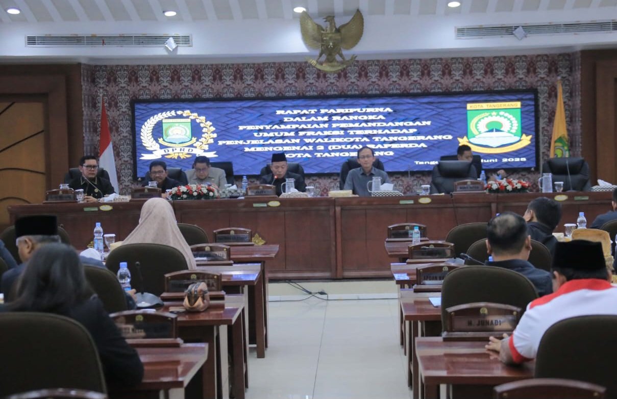 TANGERANG, Bingkaikota.com — Dewan Perwakilan Rakyat Daerah (DPRD) Kota Tangerang gelar rapat paripurna dalam rangka penyampaian pandanagn umum fraksi atas dua Rancangan Peraturan Daerah (Raperda) terkait usulan Pemerintah Kota Tangerang, Selasa (17/06/2025).