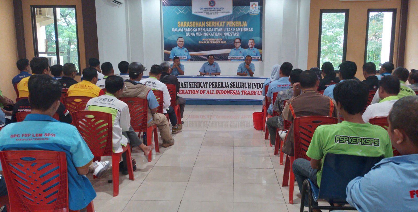 Digelar di Kantor DPD KSPSI Provinsi Banten Jalan Perintis Kemerdekaan II, Babakan, Kota Tangerang. Ratusan perwakilan Anggota KSPSI se- Provinsi Banten yang hadir, berkomitmen akan terus menjaga sinergitas demi terciptanya stabilitas kamtibmas guna meningkatkan investasi yang merupakan penentu kemajuan sektor industri yang berkelanjutan, khususnya di Provinsi Banten.