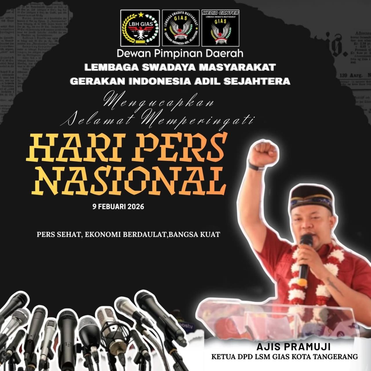 “Atas nama keluarga besar LSM GIAS DPD Kota Tangerang, saya mengucapkan Selamat Hari Pers Nasional 2026. Pers yang profesional, independen, dan berintegritas merupakan mitra strategis masyarakat sipil dalam mengawal pemerintahan yang bersih, transparan, dan akuntabel,” ungkapnya.