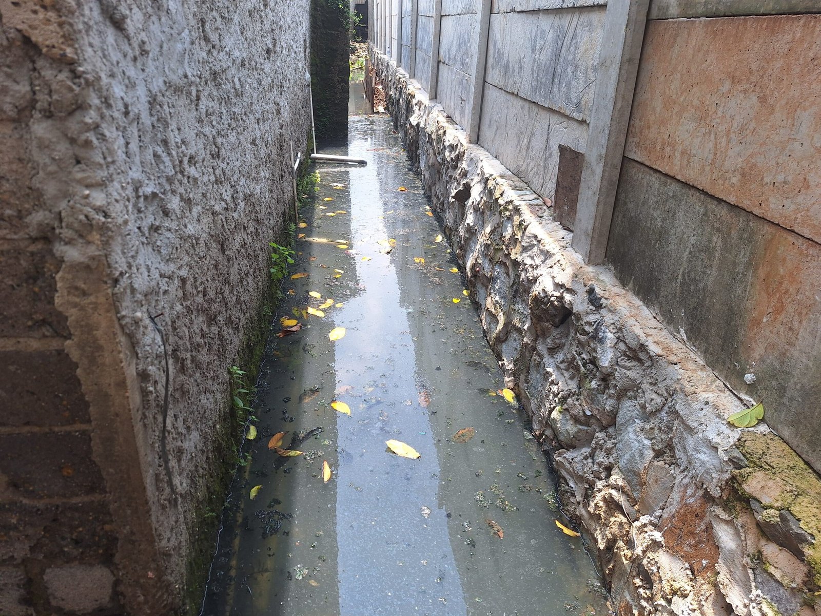 Kini, drainase berukuran 80 sentimeter yang menjadi tumpuan warga telah hilang. Akibatnya, air dari dapur warga maupun air hujan tidak memiliki jalan keluar dan mengepung pemukiman di RW tersebut.