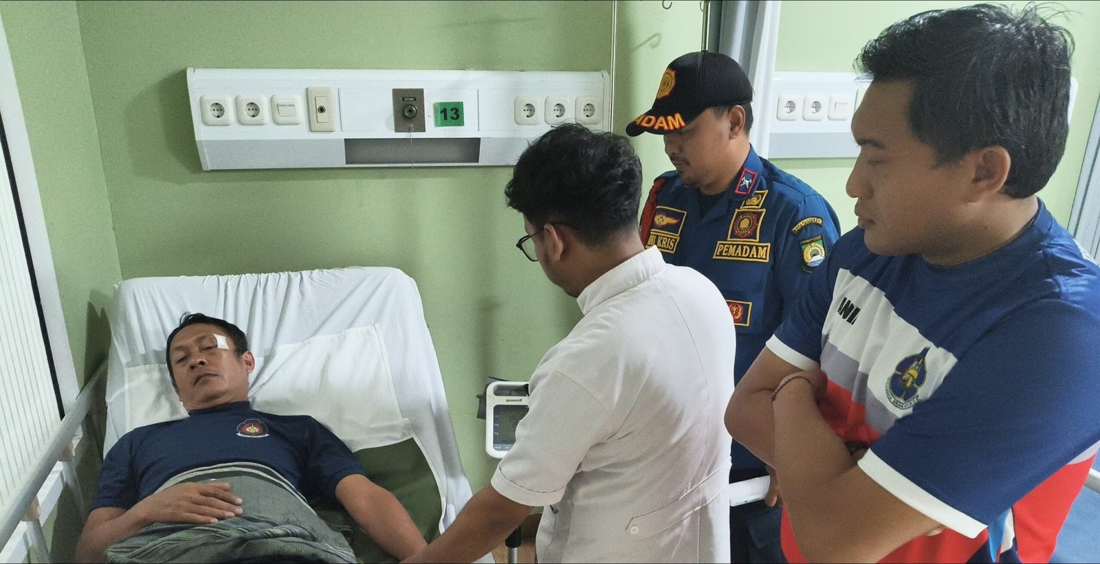 Akibat pengainayaan, petugas Pemadam Kebakaran bernama Hidayat mendapat perawatan medis di Rumah Sakit. Bingkaikota.com/Ade Saputra.