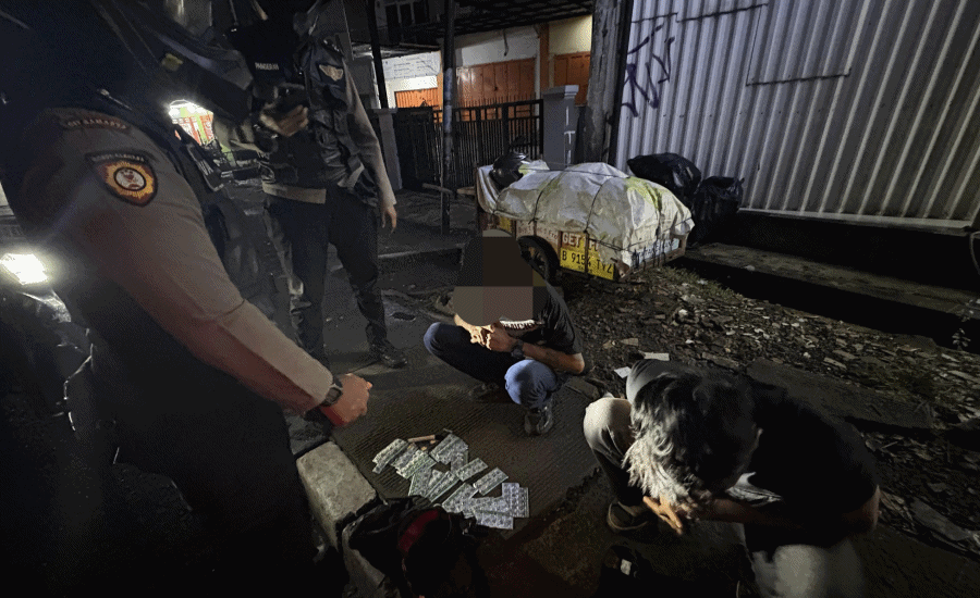 Tim Patroli Presisi Sat Samapta Polres Metro Tangerang Kota mengamankan dua pemuda membawa ratusan butir obat tramadol dan eximer. Bingkaikota.com/Ade Saputra.