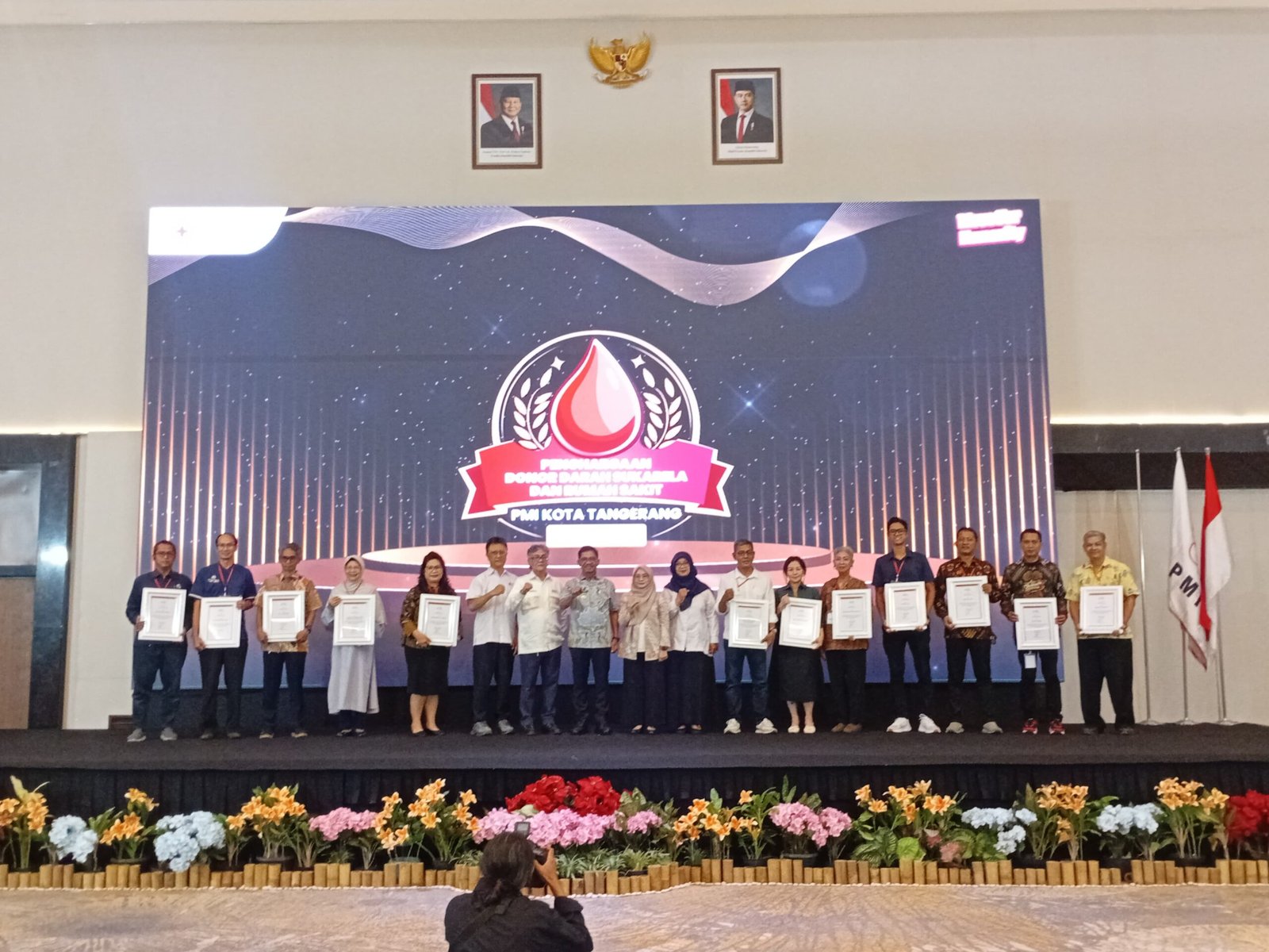PMI Kota Tangerang, Banten, memberikan piagam penghargaan kepada Kelompok Donor Darag Sukarela dan Rumah Sakit. Bingkaikota.com/Ade Saputra.