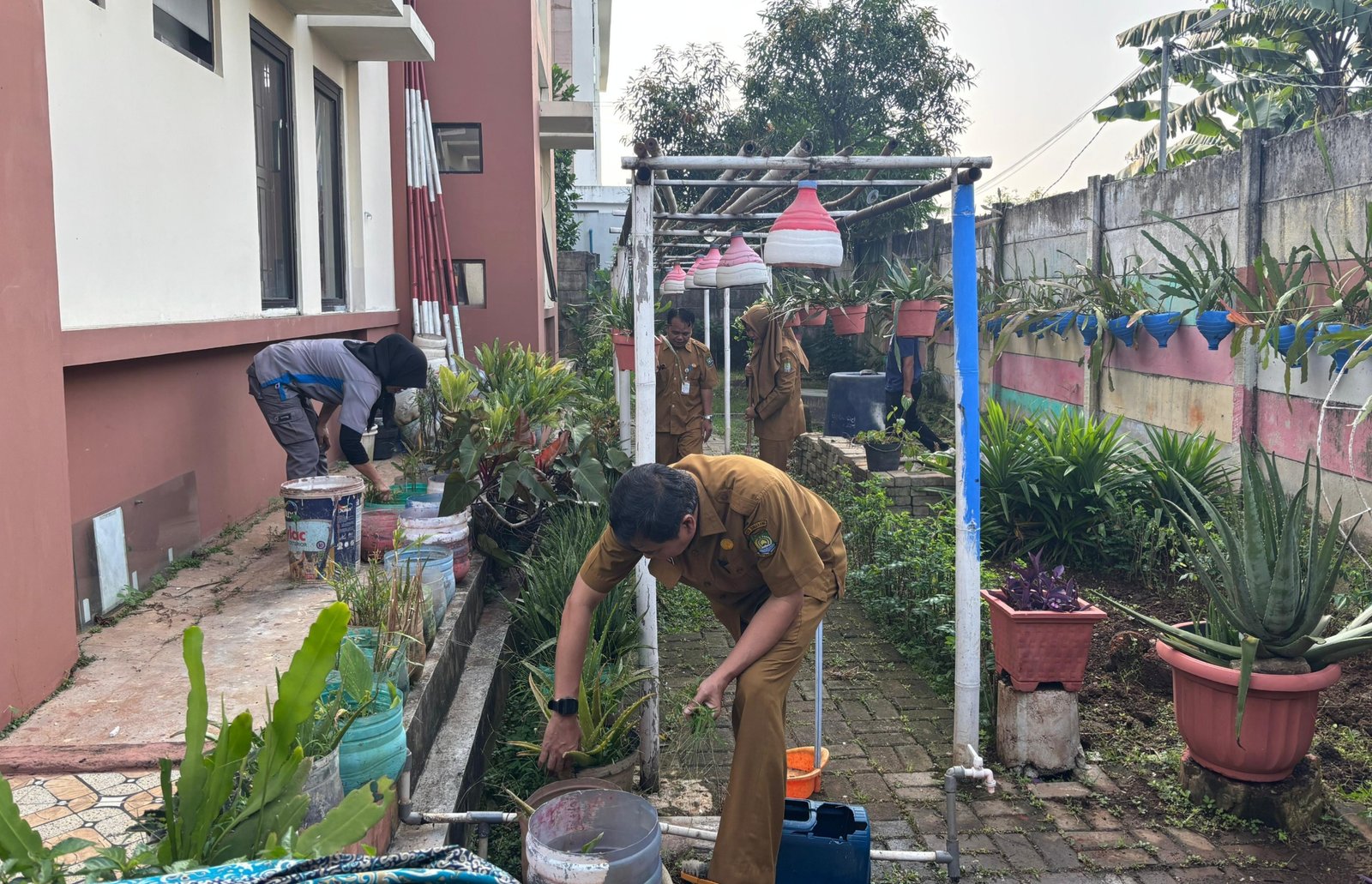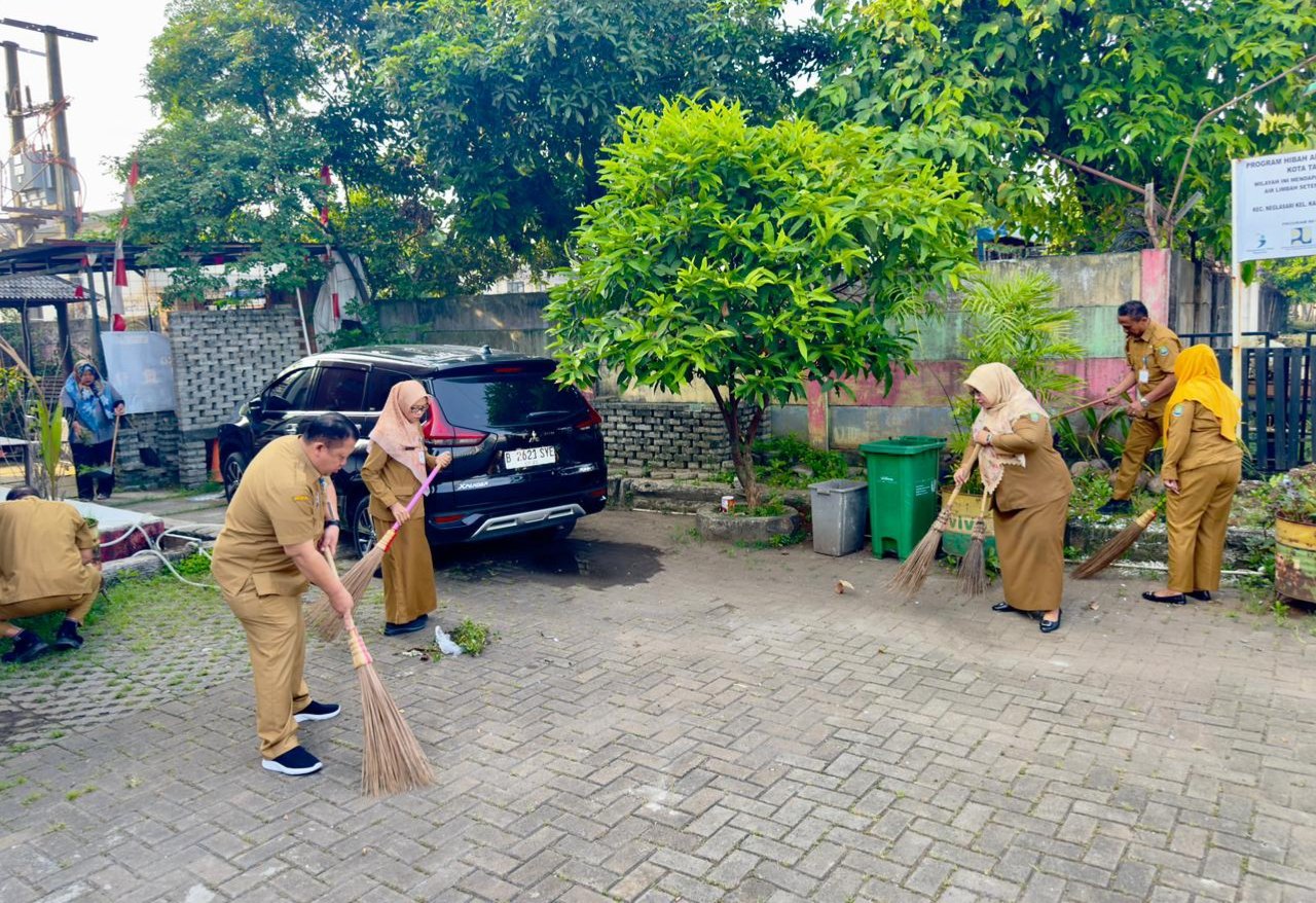 Seluruh jajaran pegawai, mulai dari ASN hingga nonASN, rutin turun langsung melakukan kerja bakti bersih-bersih setiap hari Selasa dan Jumat pagi di tujuh wilayah kelurahan se-Kecamatan Neglasari.