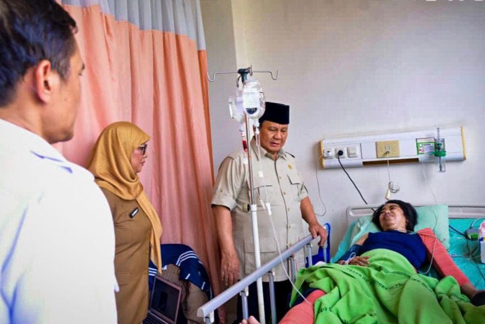Dalam kesempatan tersebut, Prabowo sempat berinteraksi dengan para korban yang sedang menjalani perawatan.