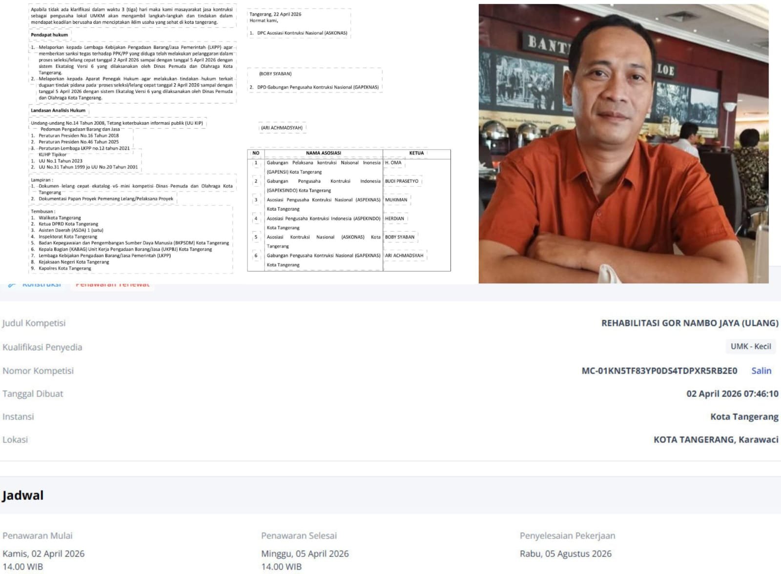 Diduga Ada Penyimpangan Proses Lelang, Pengusaha Kontruksi Lokal Somasi Dispora Kota Tangerang